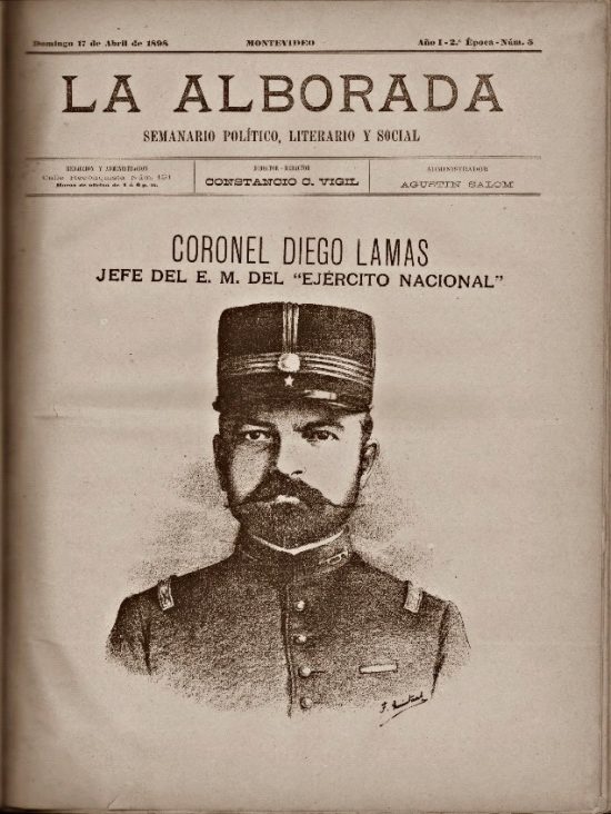 “Diego Lamas en Rocha – La visita que el ex coronel revolucionario cuyo nombre encabeza estas líneas, ha hecho a este departamento, nos ha confirmado una vez más en que van desapareciendo a pasos agigantados, aquellos odios que en dos bandos dividían a la gran familia uruguaya.